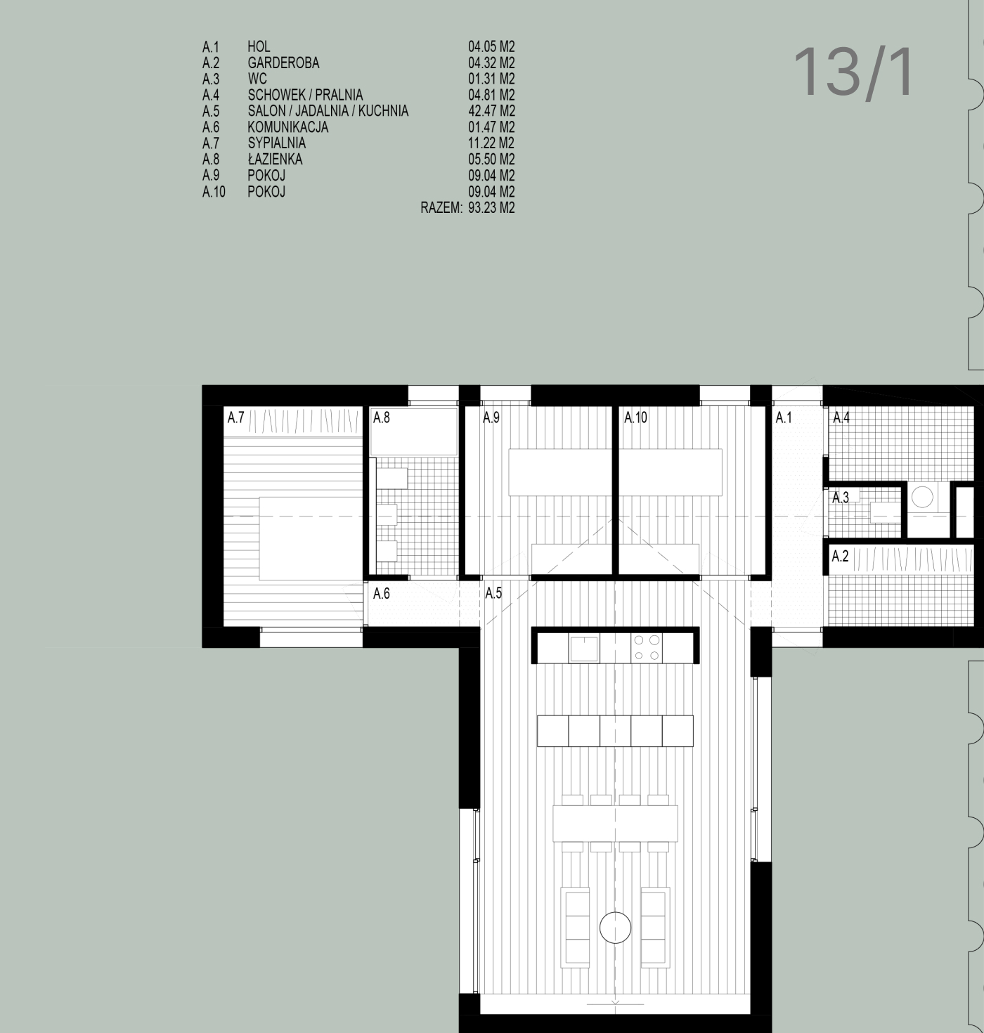 • Salon / jadalnia / kuchnia 42.47 m2